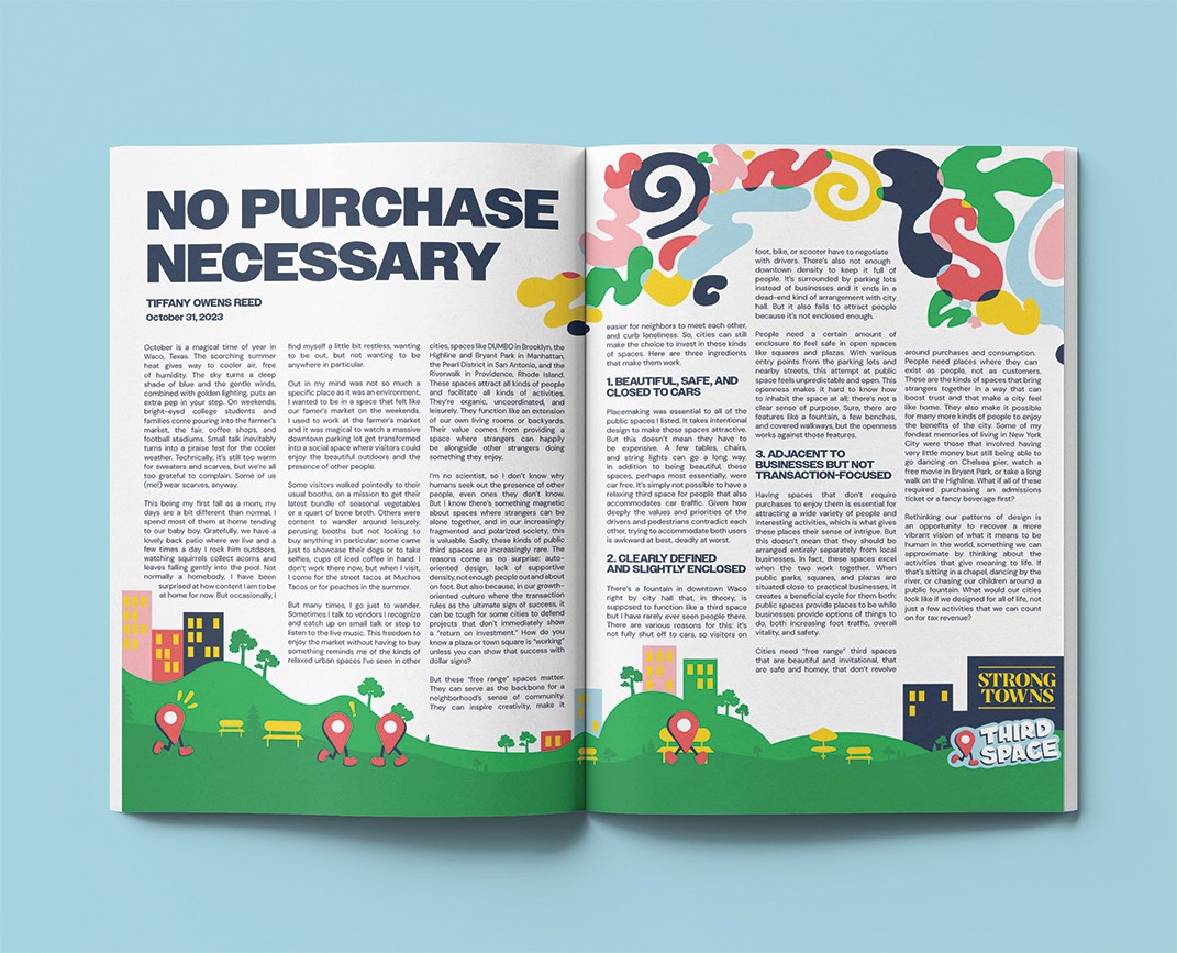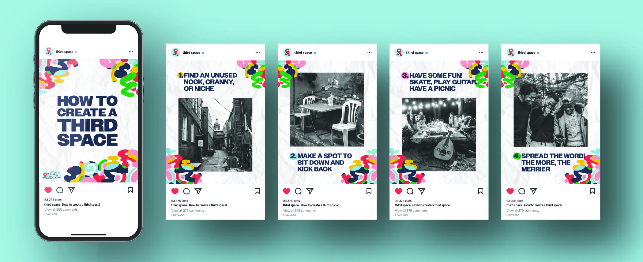 Third Space is a conceptual social good campaign that is set in my hometown, Lynchburg, VA. It encourages locals to claim abandoned spaces as third spaces. A third space is a public place, separate from home and work, where people can gather and socialize. What makes this campaign unique is the fact that we took photos of real places in Downtown Lynchburg and used them to show off our designs. The campaign features the design of three revitalized spaces in downtown Lynchburg, a printed magazine article, and coordinated Instagram posts that engage the public and encourage community participation.
